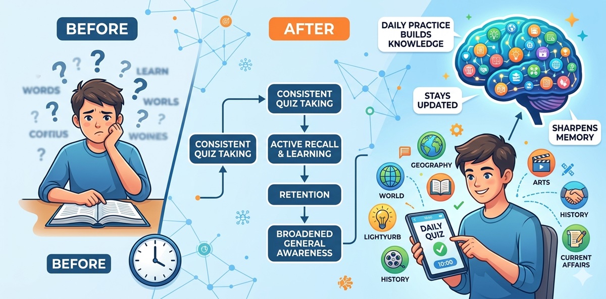 Let’s see how solving quizzes every day can help improve your general awareness in a simple and useful way.